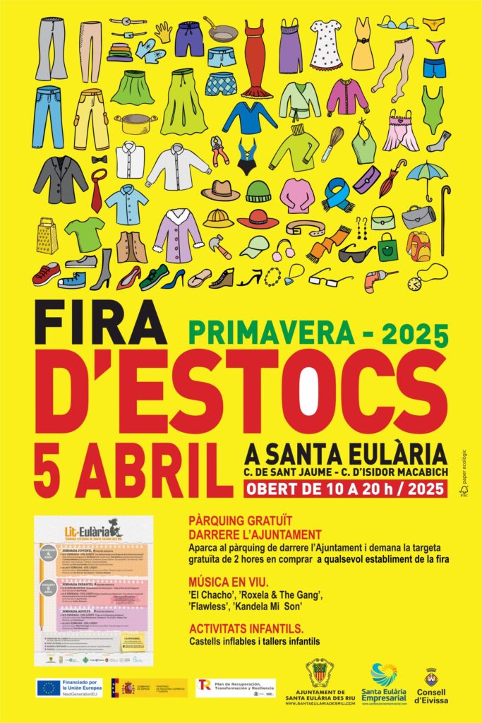 Santa Eulària des Riu, abril de 2025 – La Fira d’Estocs de Primavera celebra su decimosexta edición consolidándose como uno de los eventos más relevantes para el comercio de proximidad en Santa Eulària. Durante el sábado 5 de abril, más de 40 establecimientos del municipio saldrán a la calle con una amplia variedad de productos en oferta, actividades paralelas y una programación cultural complementaria que llenará el centro urbano de vida, oportunidades y encuentros.